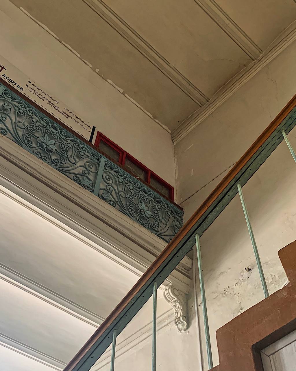 Спросила разрешения пофоткать и пока измудрялась, как сфотографировать потолок в форме многочисленных арочек, он мне вкратце рассказал про барышень благородных, что здесь учились, казаков и Дутова, которые затем заняли здание, период советских коммуналок тоже затронул. И про оркестровый балкон! Просто вишенка на торте! Он как раз над его рабочим местом. Голубенькой краской его ограждение выкрашено.